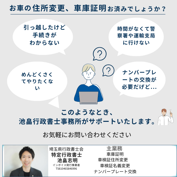 当事務所は、自動車登録・車庫証明を専門とする行政書士事務所です。